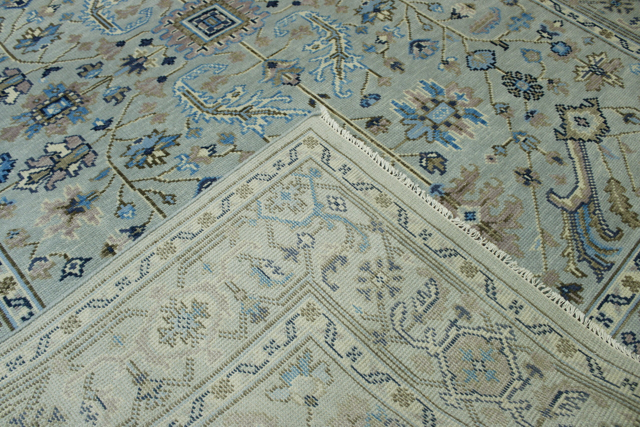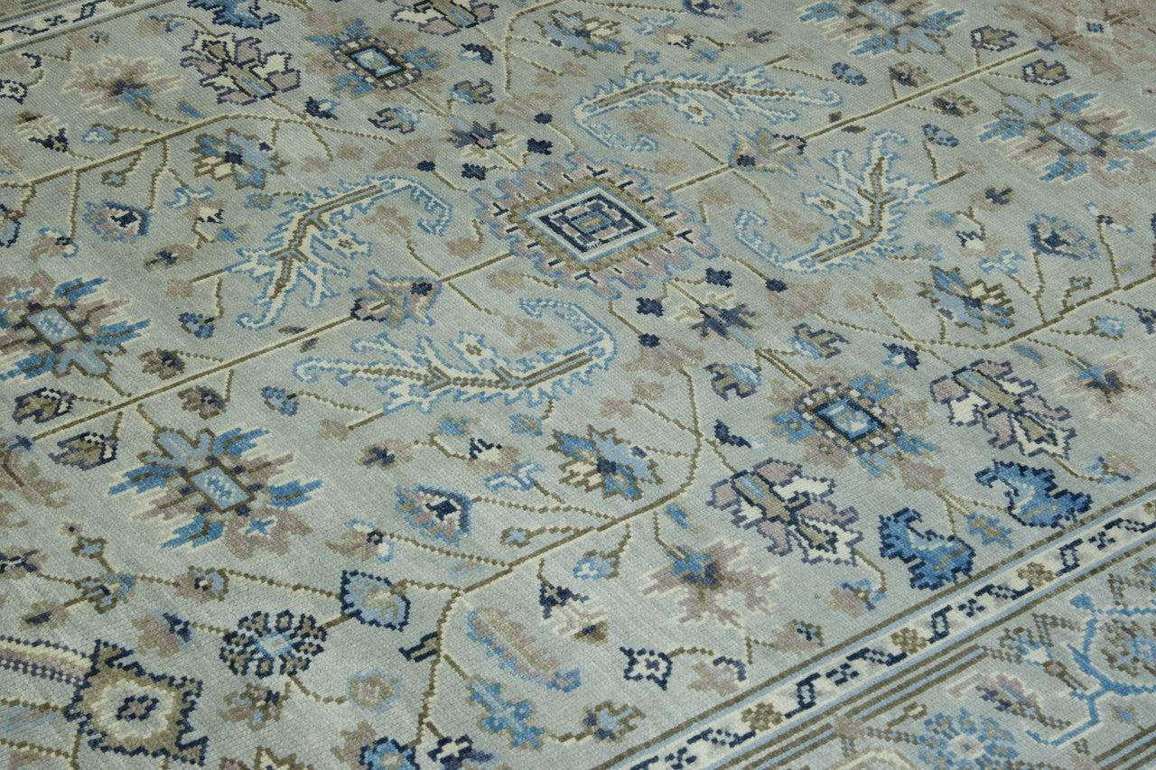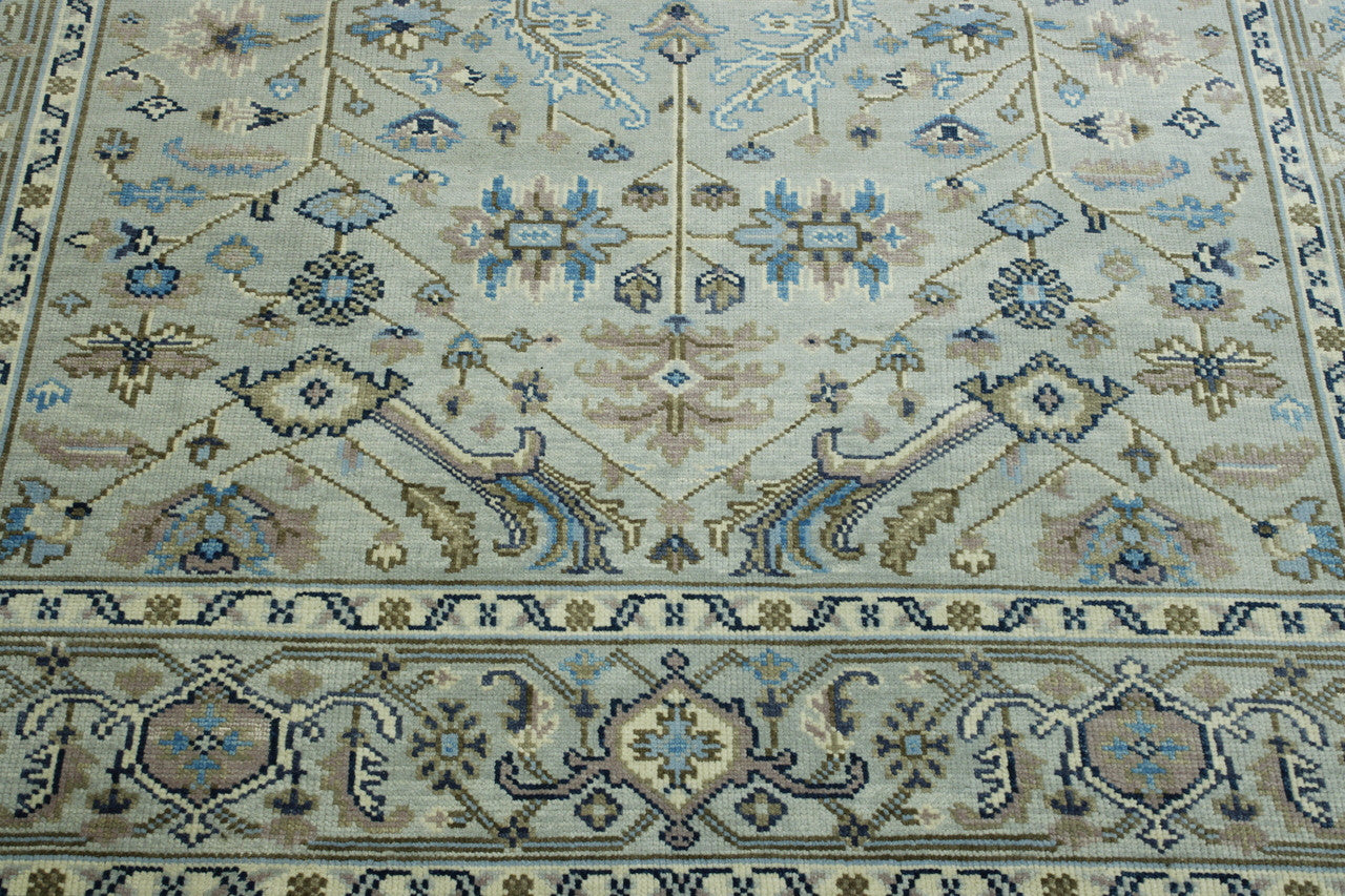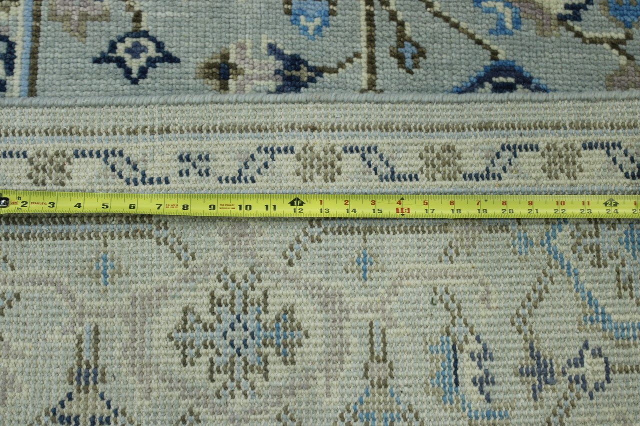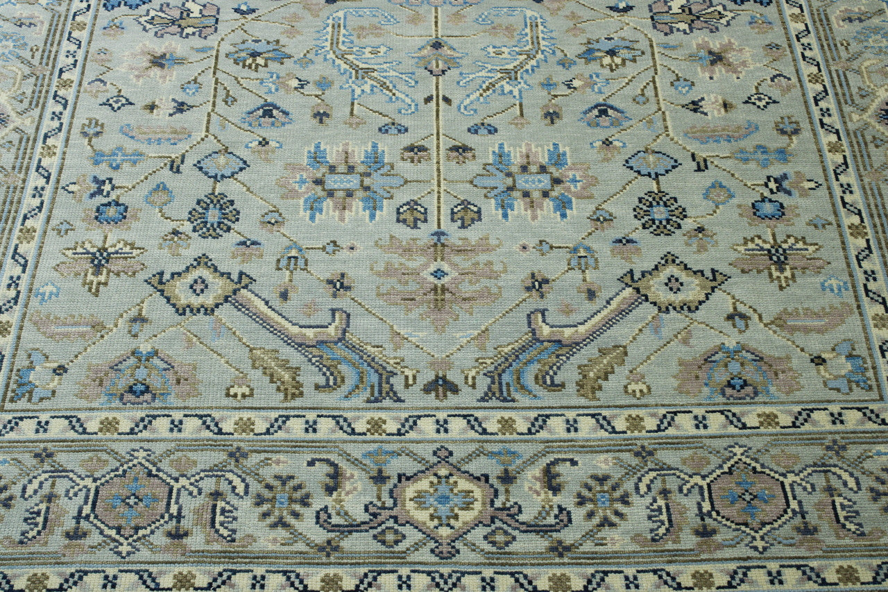 Exact Size: 8.11x11.11Construction: Hand KnottedShape: RectangleMaterial: WoolColor Combination: Soft Blue/GreyStyle: OushakOrigin: India