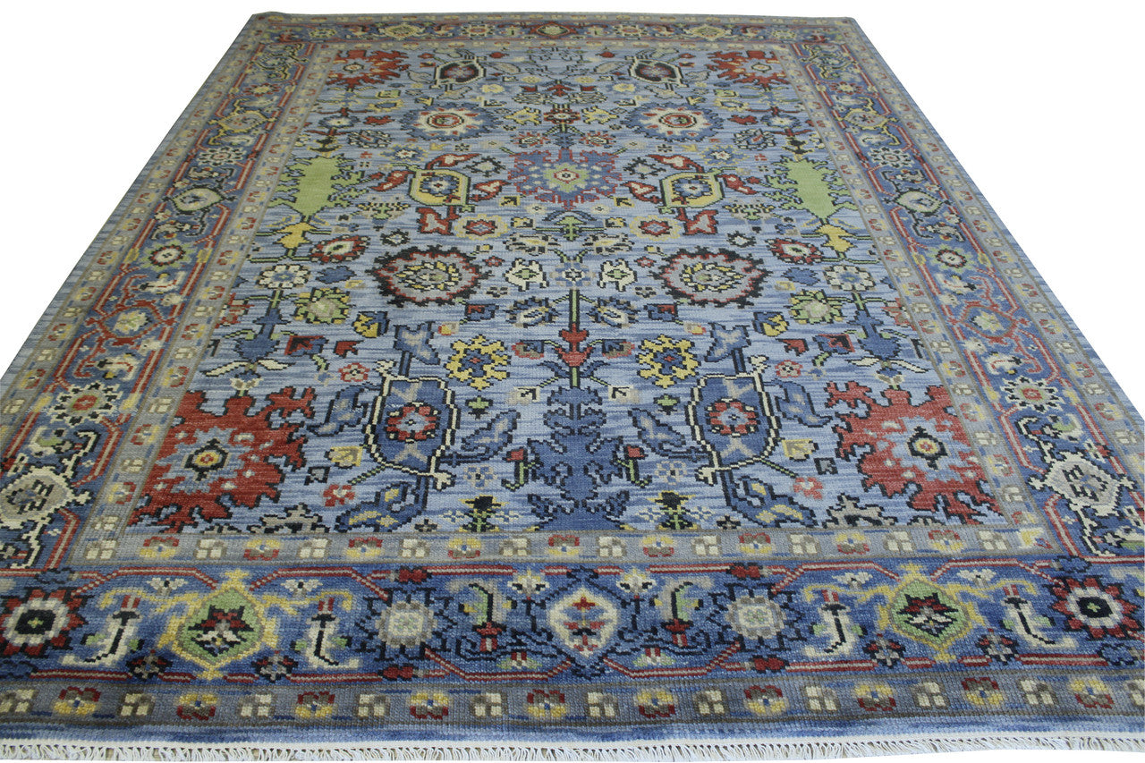 Exact Size: 10.0X8.0Construction: Hand KnottedShape: RectangleMaterial: WoolColor Combination: Blue/MultiStyle: OushakOrigin: India