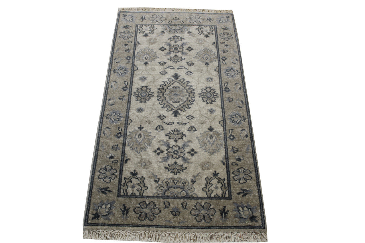 Oushak White wash Zigler Design Wool Hand Knotted Rug 2x4 - w5010