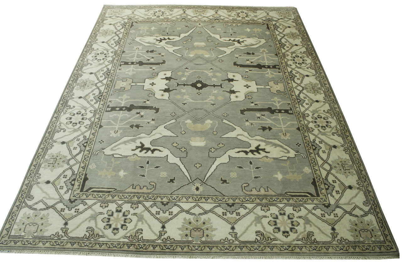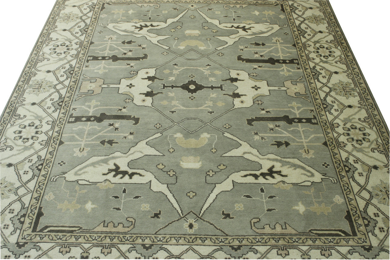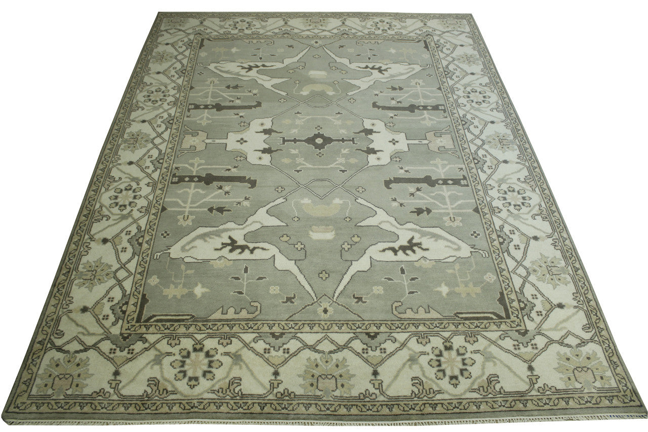 Exact Size: 9.4x11.8Construction: Hand KnottedShape: RectangleMaterial: WoolColor Combination: Grey/BeigeStyle: OushakOrigin: India
