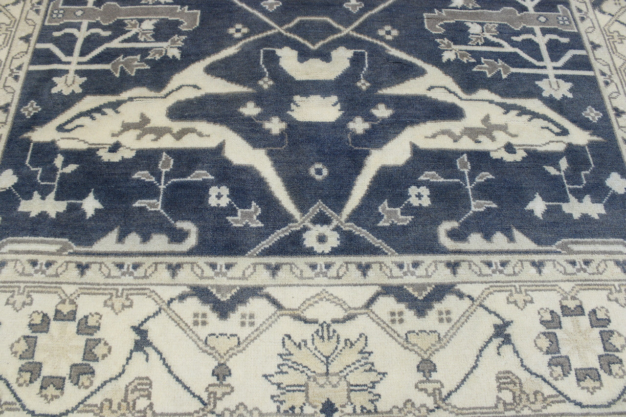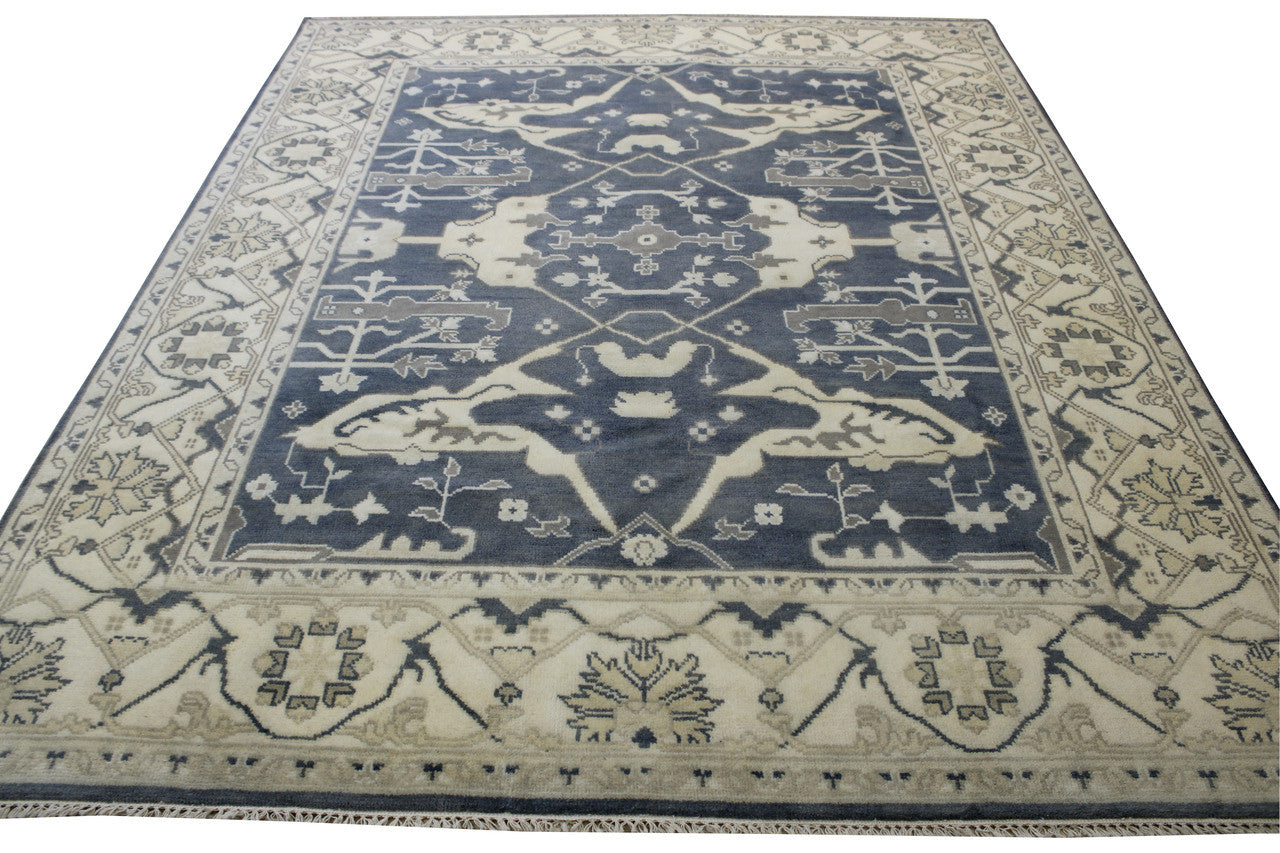 Exact Size: 8.1X9.9Construction: Hand KnottedShape: RectangleMaterial: WoolColor Combination: Blue/BeigeStyle: OushakOrigin: India