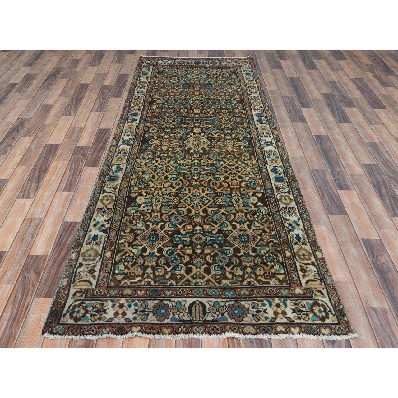 Overdyed & Vintage Worn Wool Hand Knotted Rug Brown Ivory 3.7X9.10 -O081073