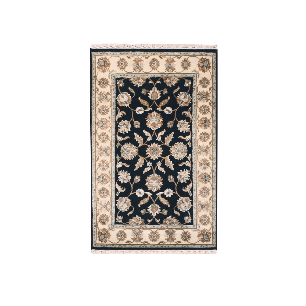 Rajasthan Wool & Silk Hand Knotted Rug Black Beige 3.0X5.1 -O075405