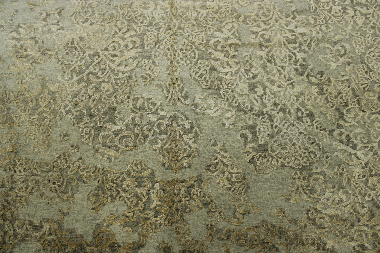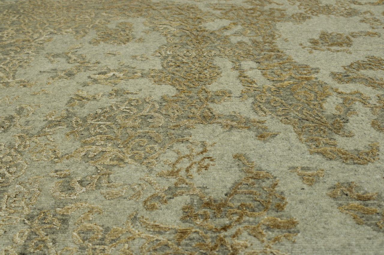 Exact Size: 7.10x9.9Construction: Hand KnottedShape: RectangleMaterial: Wool/SilkColor Combination: Beige/GoldStyle: TansitionalOrigin: India