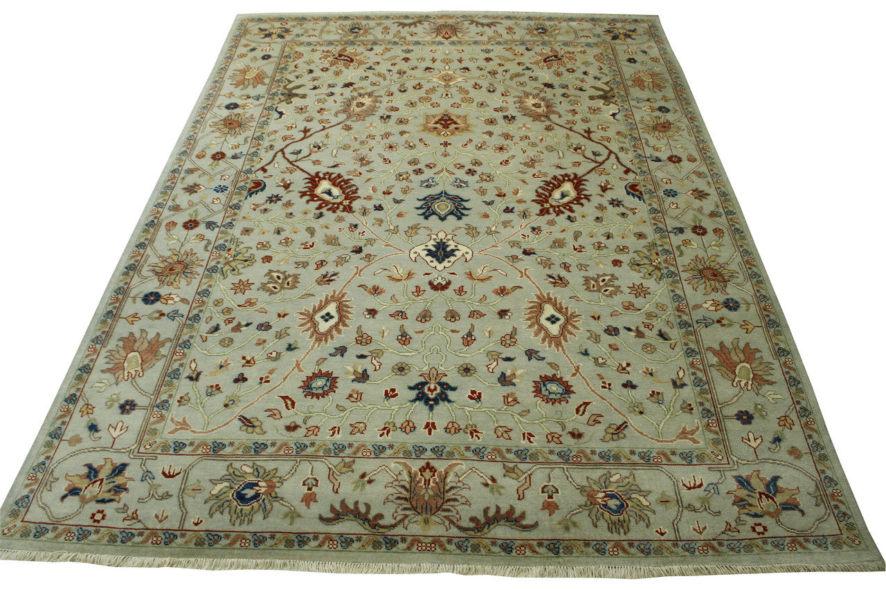 Exact Size: 9.3x12.4Construction: Hand KnottedShape: RectangleMaterial: WoolColor Combination: Multi/BeigeStyle: TraditionalOrigin: India