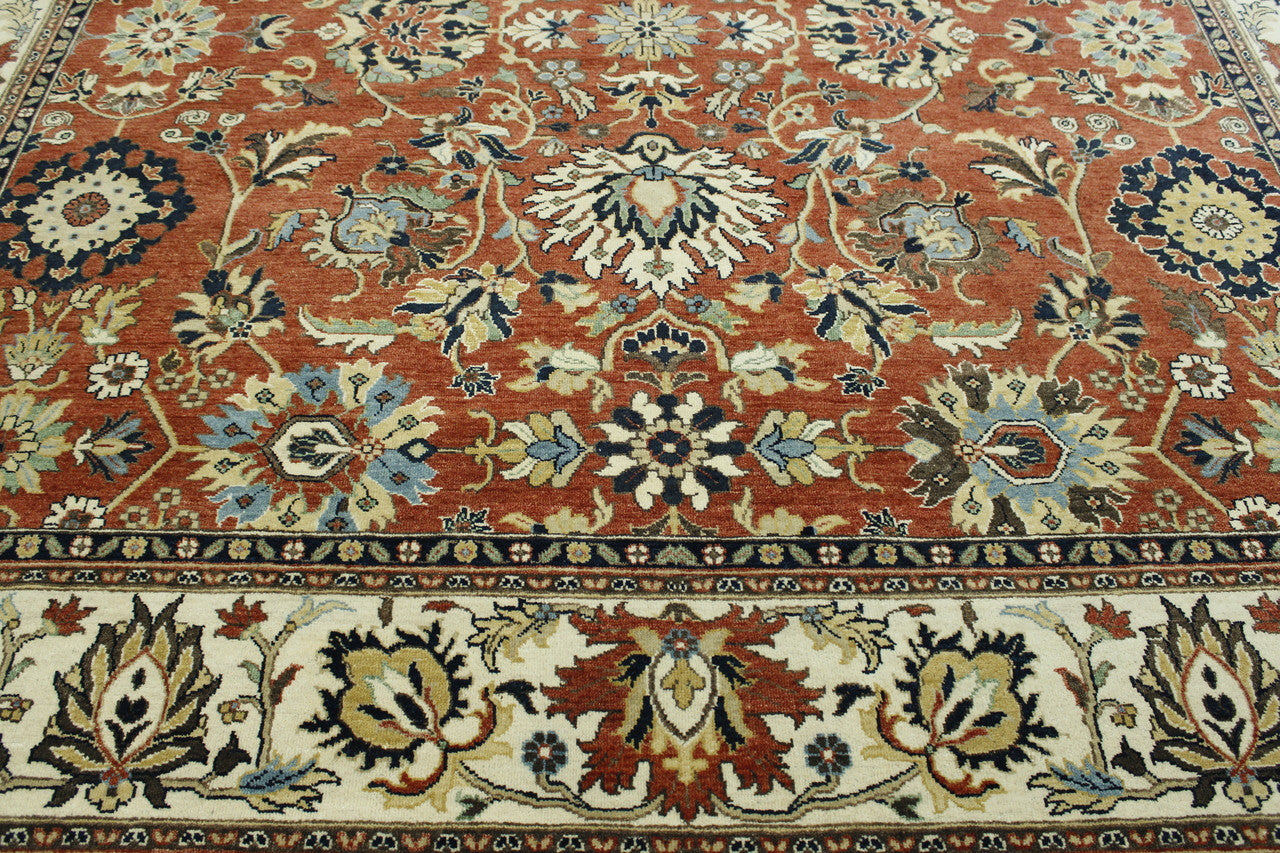 Exact Size: 8.10x11.11Construction: Hand KnottedShape: RectangleMaterial: WoolColor Combination: Beige/RustStyle: TraditionalOrigin: India