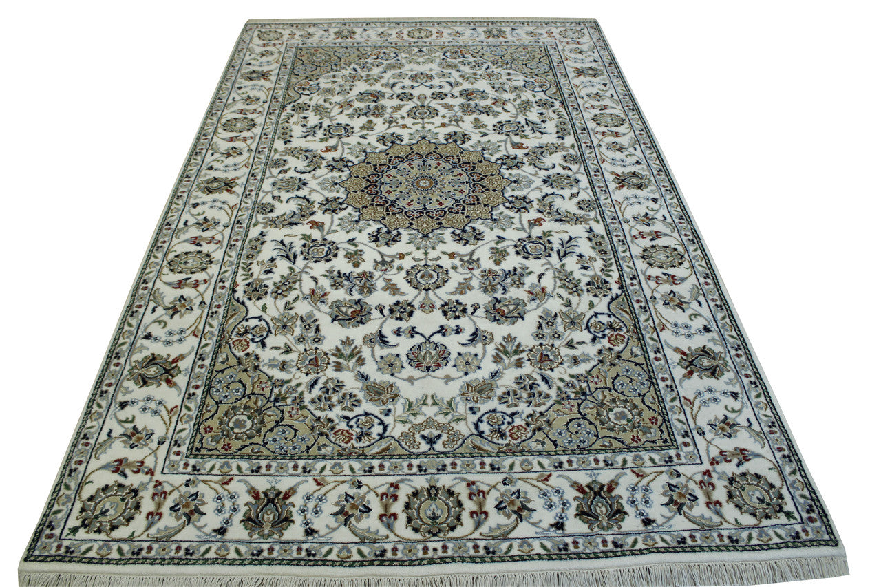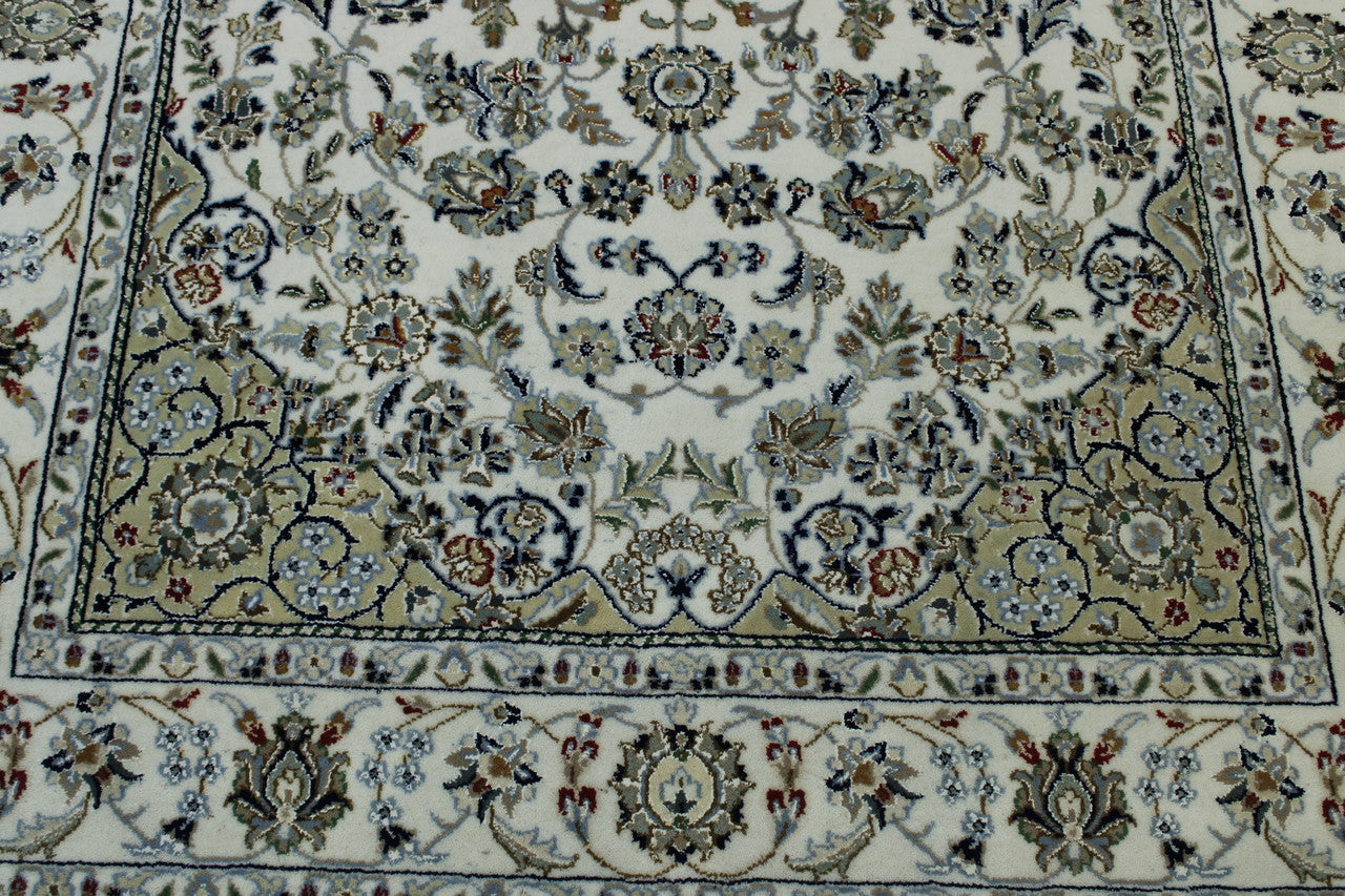 Exact Size: 5.1X8.1Construction: Hand KnottedShape: RectangleMaterial: Wool/SilkColor Combination: Ivory/IvoryOrigin: India