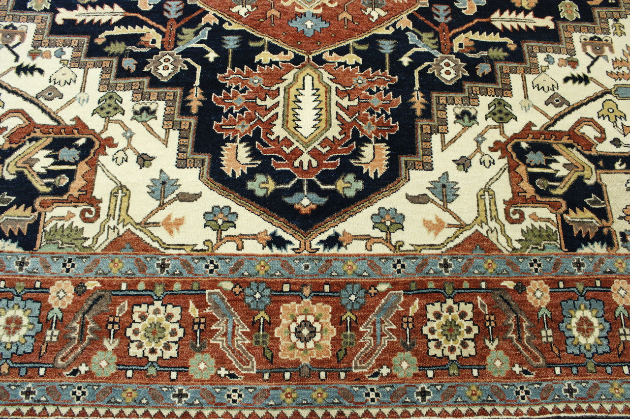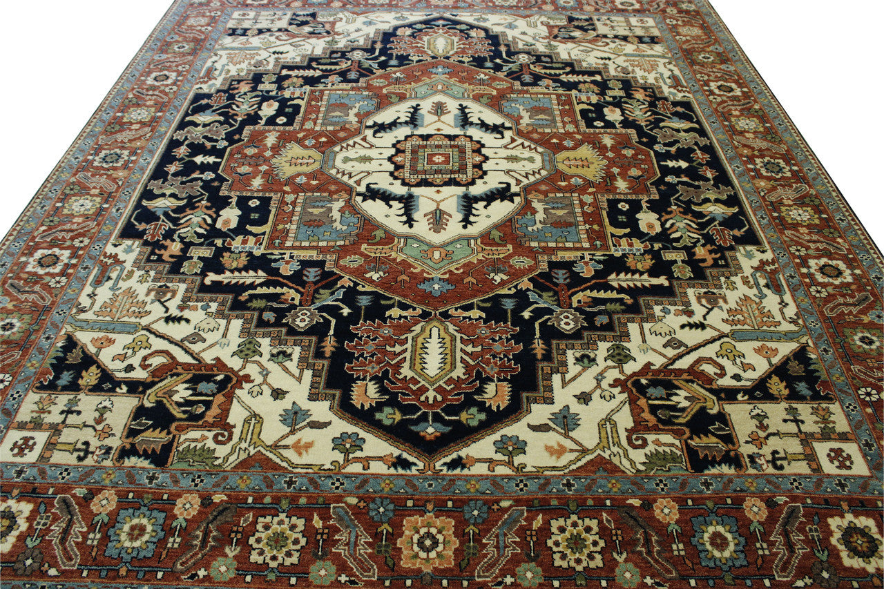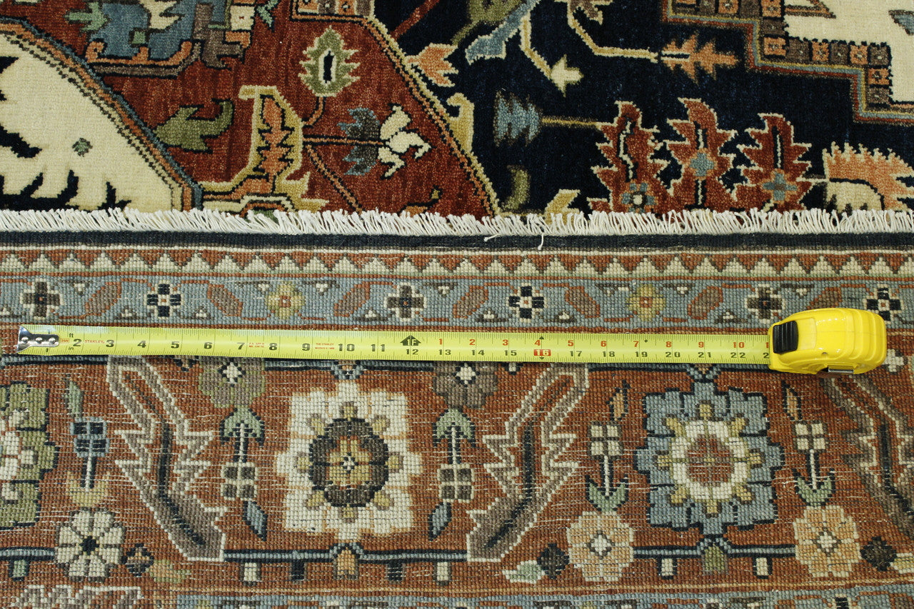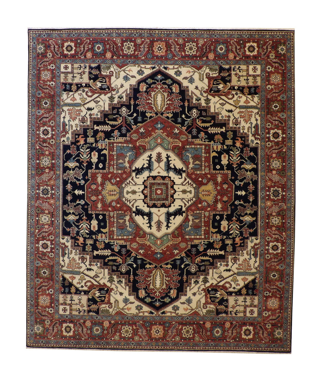 Exact Size: 8.1X9.10Construction: Hand KnottedShape: RectangleMaterial: WoolColor Combination: Blue/RustStyle: TraditionalOrigin: India