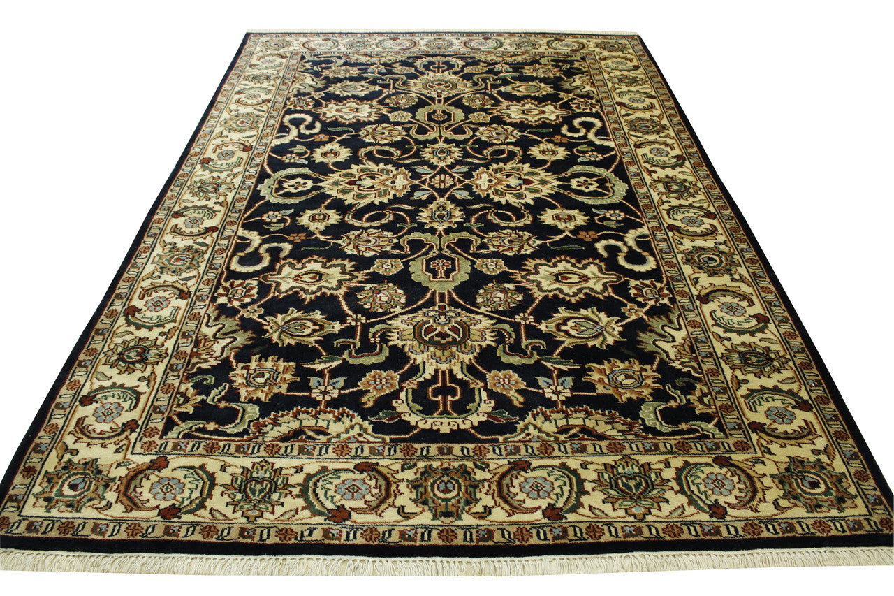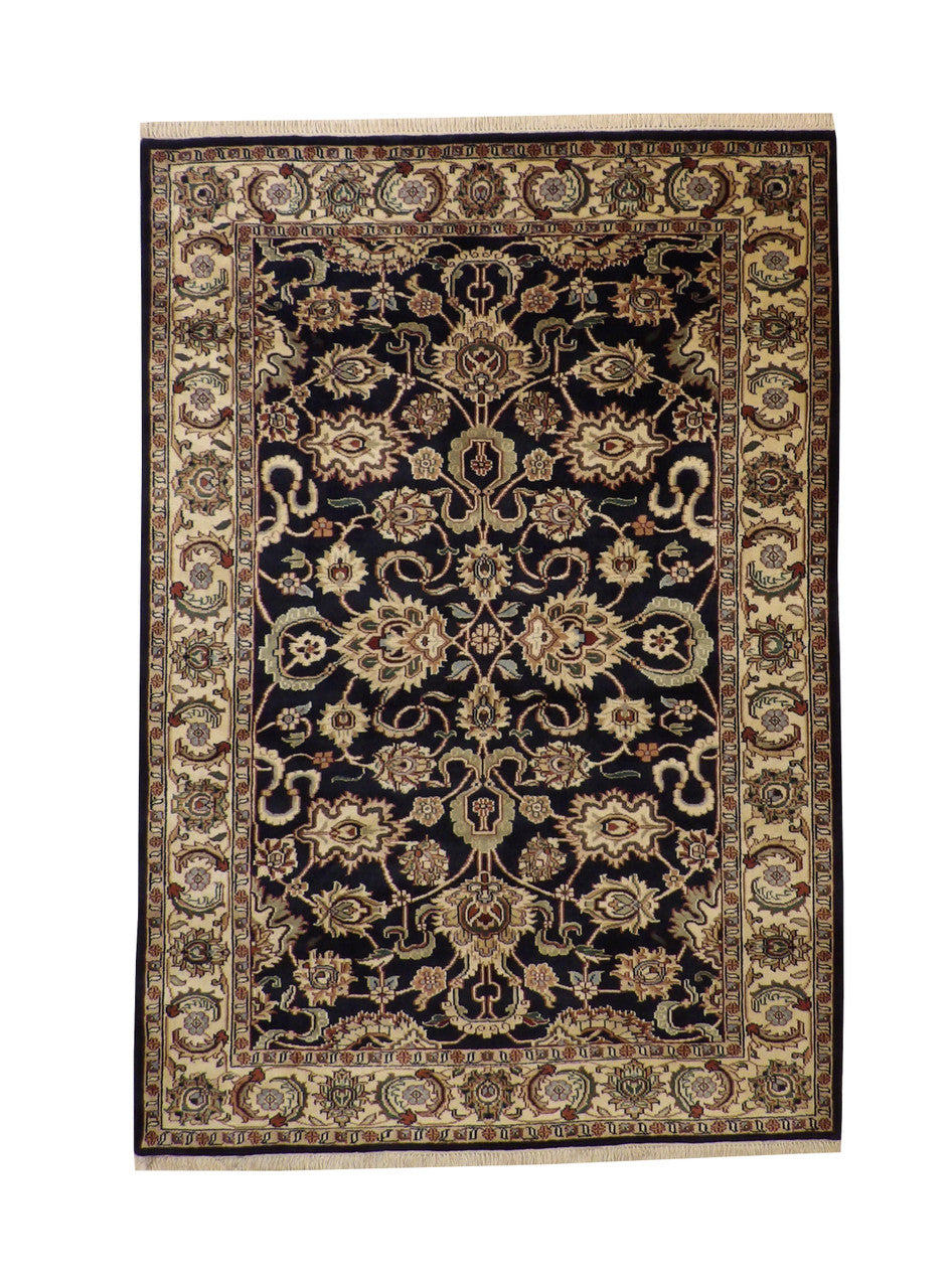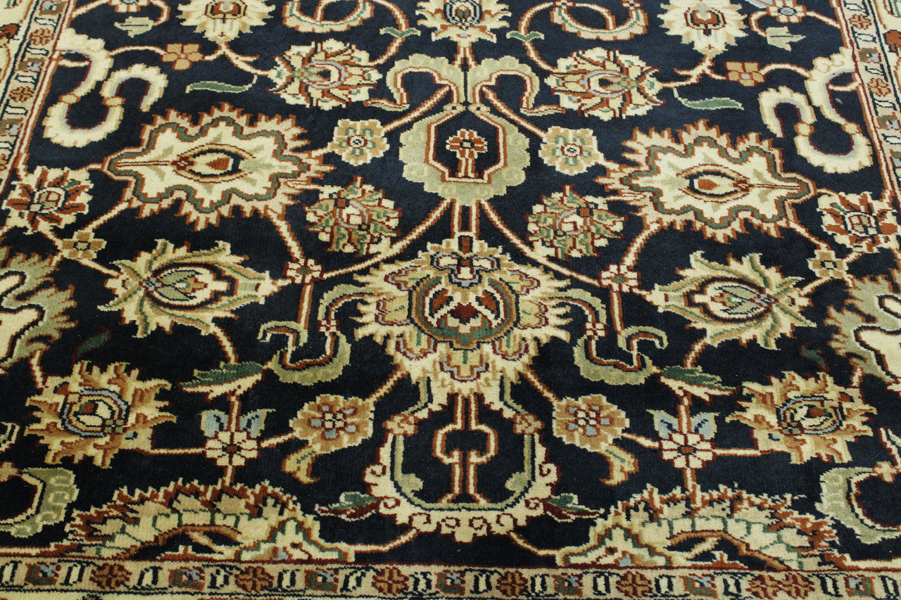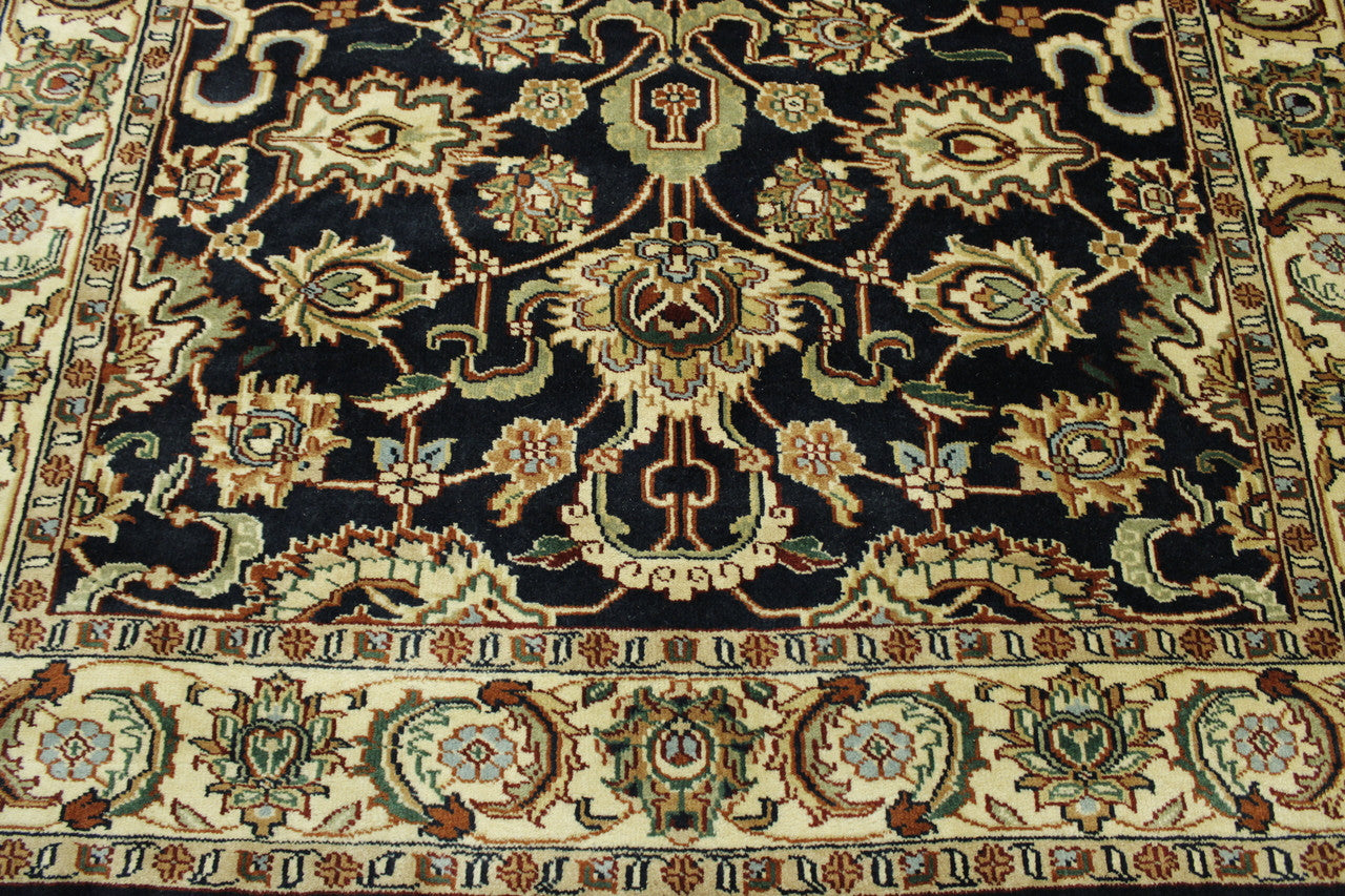 Exact Size: 6.1x8.11Construction: Hand KnottedShape: RectangleMaterial: WoolColor Combination: Blue/BeigeOrigin: India