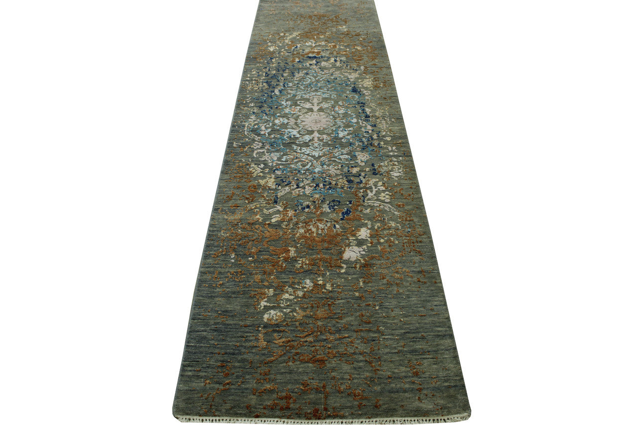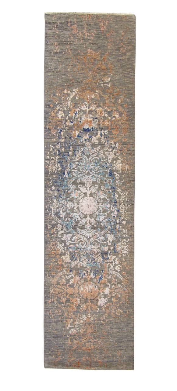 Exact size: 2.7x9.11Construction: Hand Knotted RugShape: RunnerMaterial: Wool/silkColor: BlueOrigin: India