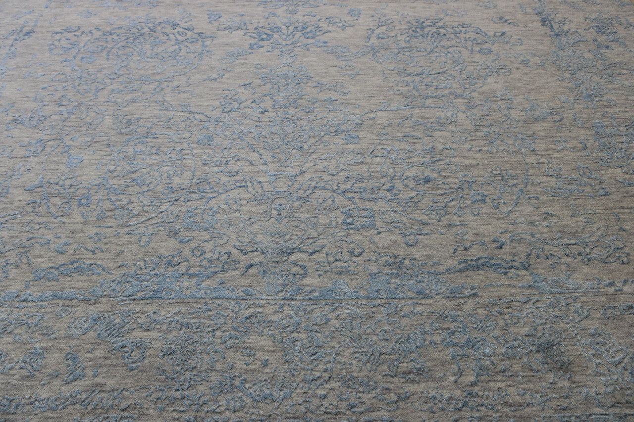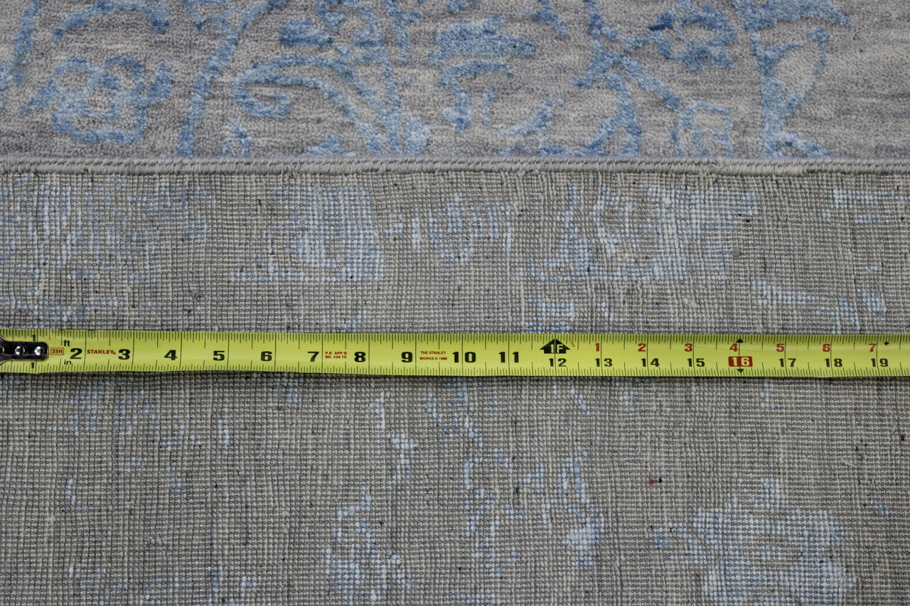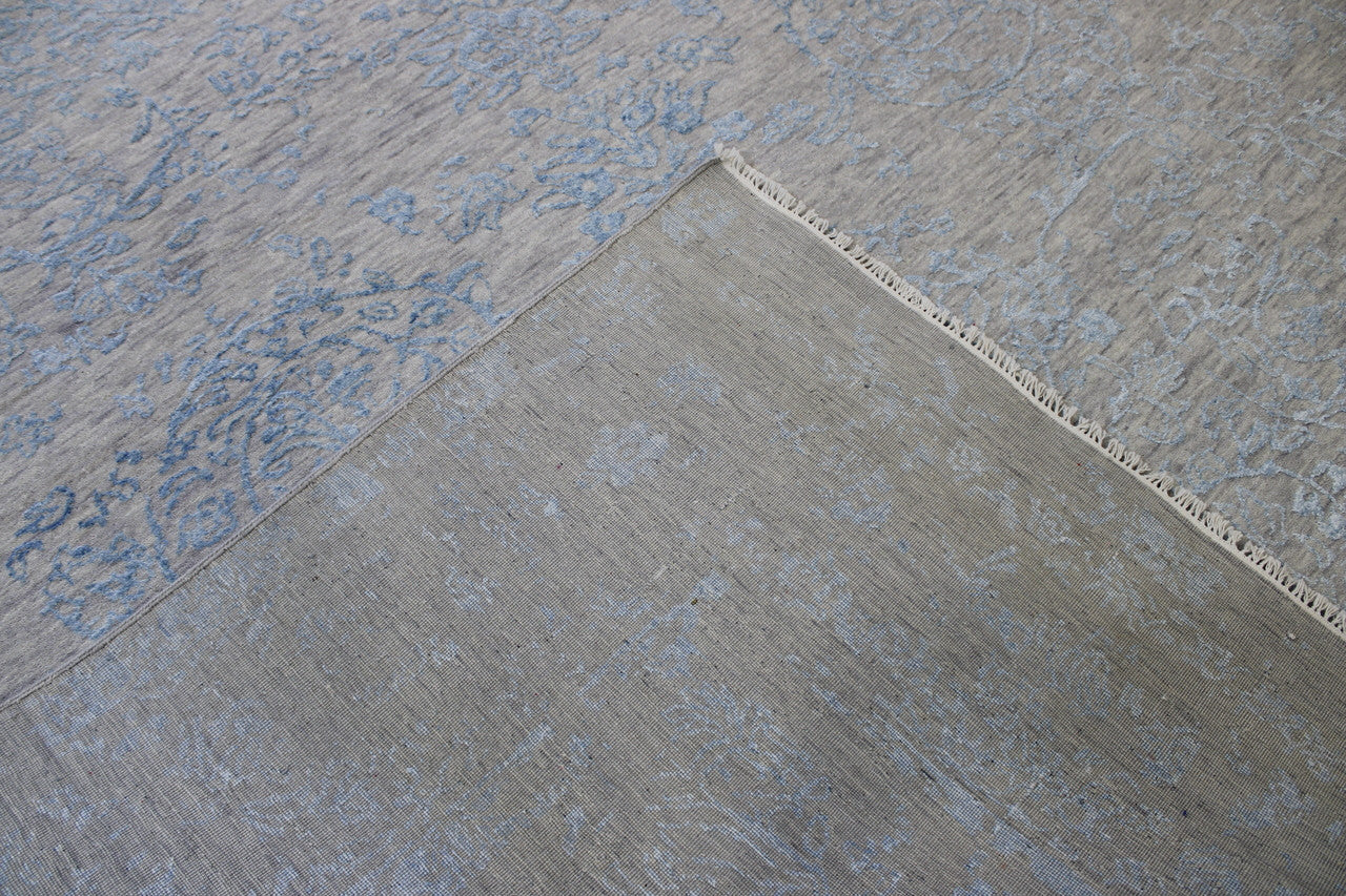 Exact Size: 8.10x12.5Construction: Hand KnottedShape: RectangleMaterial: Wool/SilkColor Combination: Blue/GreyStyle: TransitionalOrigin: India