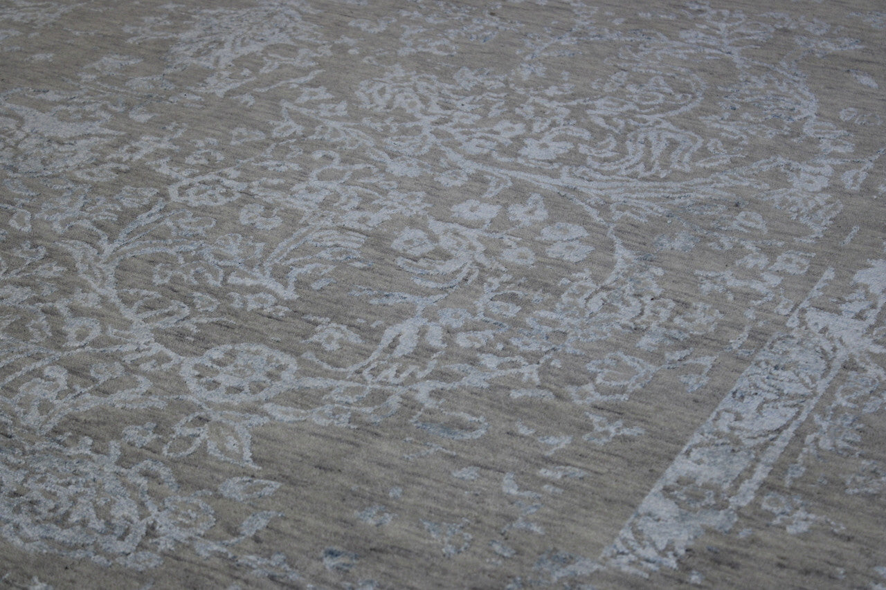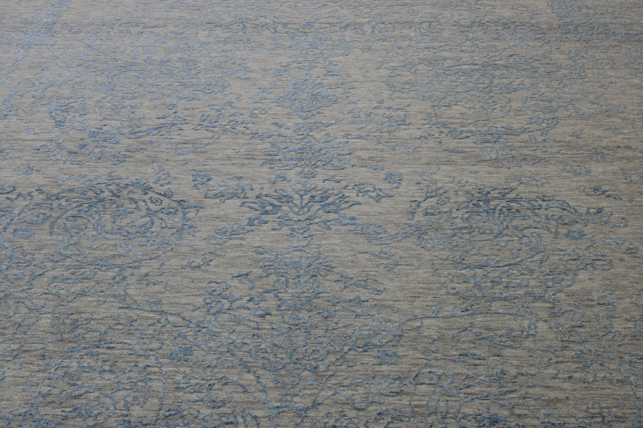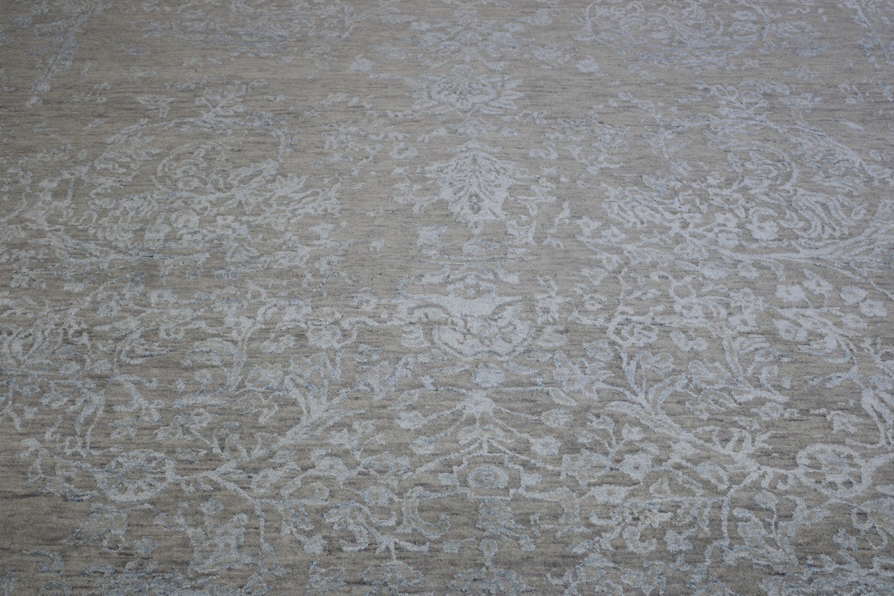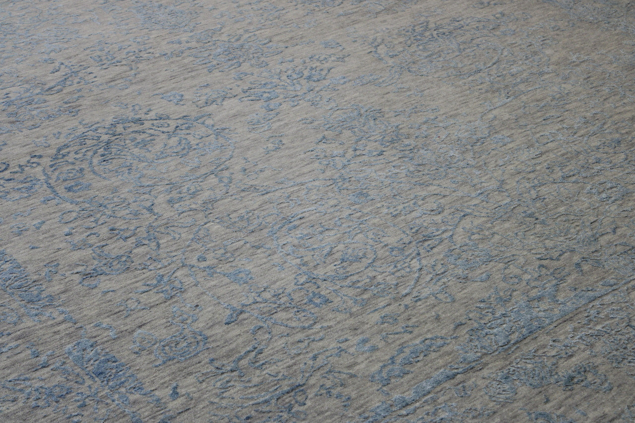 Exact Size: 8.10x12.5Construction: Hand KnottedShape: RectangleMaterial: Wool/SilkColor Combination: Blue/GreyStyle: TransitionalOrigin: India