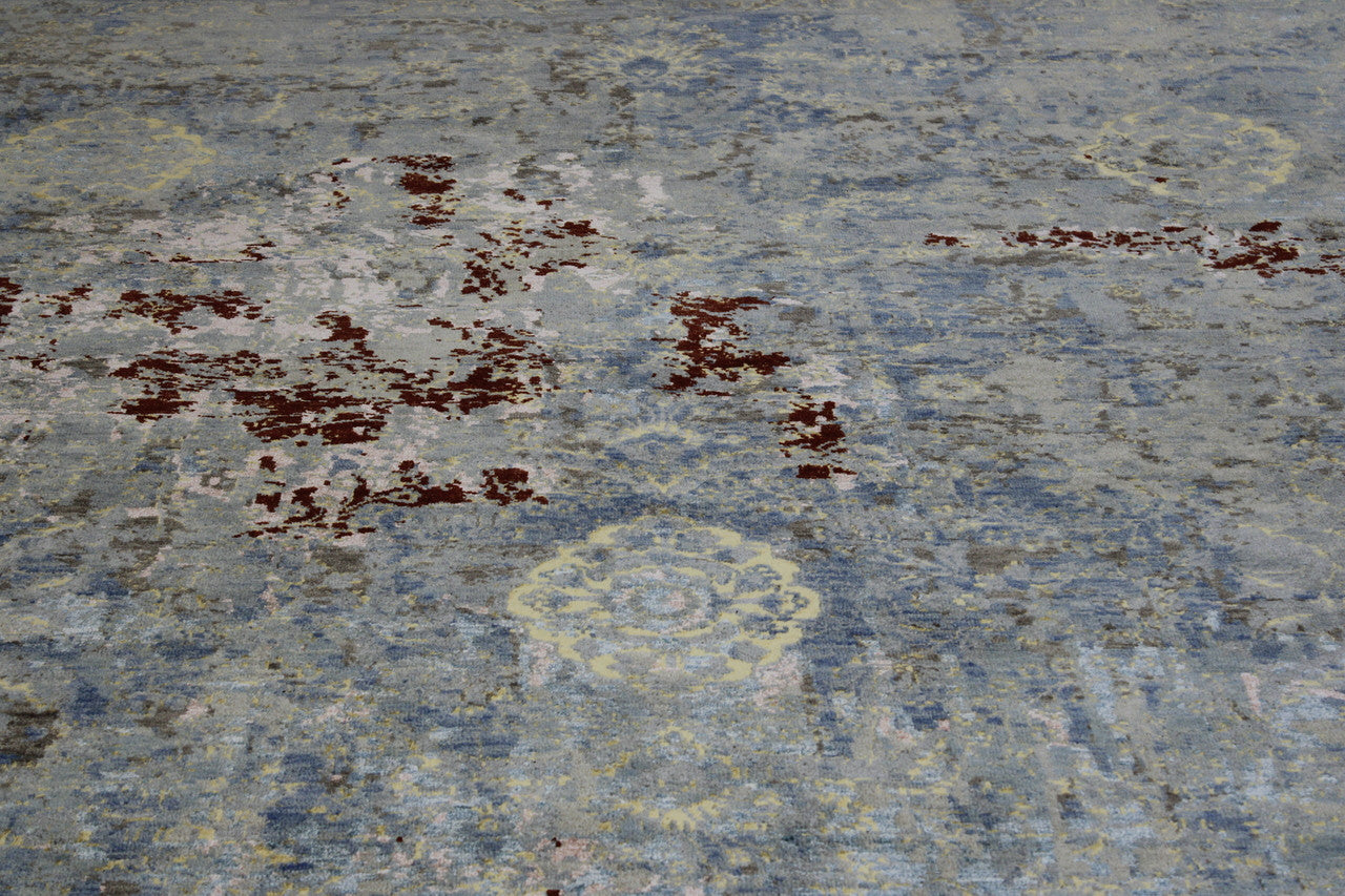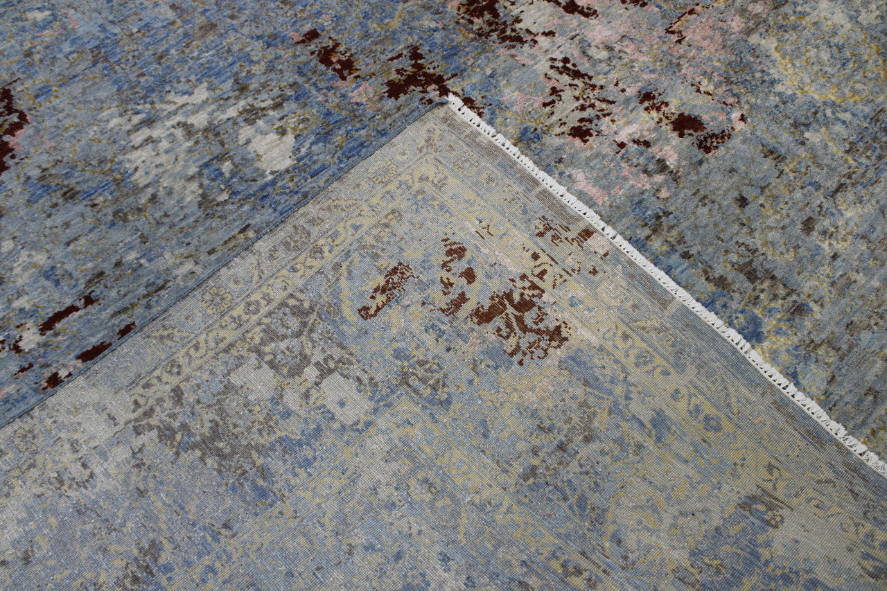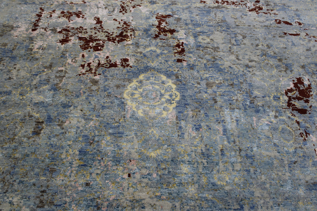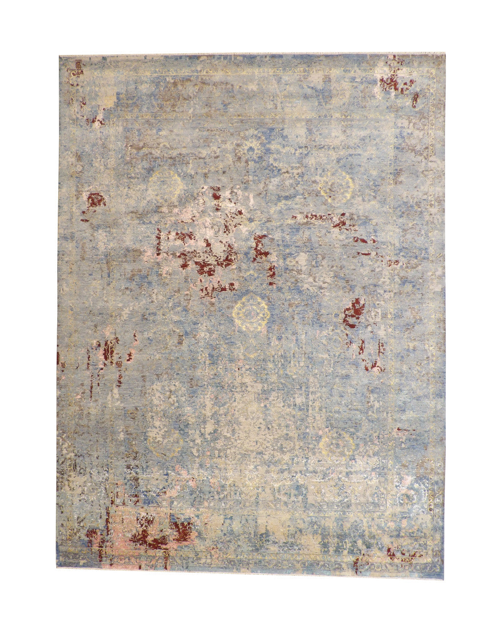 Exact Size: 9.0x12.0Construction: Hand KnottedShape: RectangleMaterial: Wool/SilkColor Combination: Blue/MultiStyle: TransitionalOrigin: India
