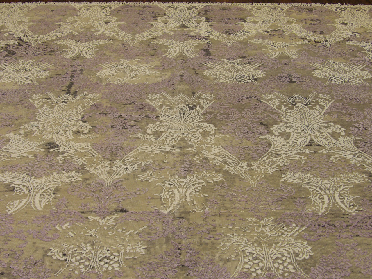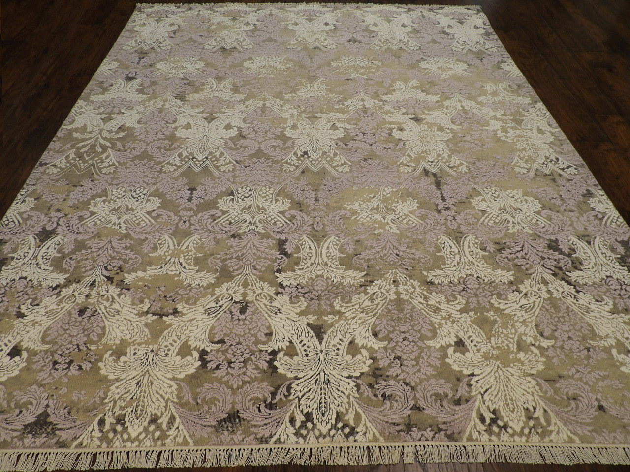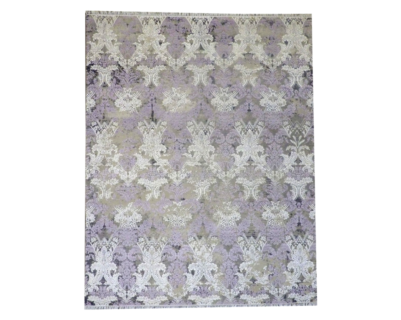 Exact Size:8'0"x10'0"Construction:Hand KnottedShape:RectangleMaterial:Silk/WoolColor Combination:Purple/greyOrigin:India
