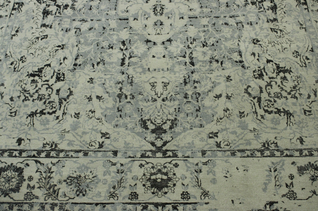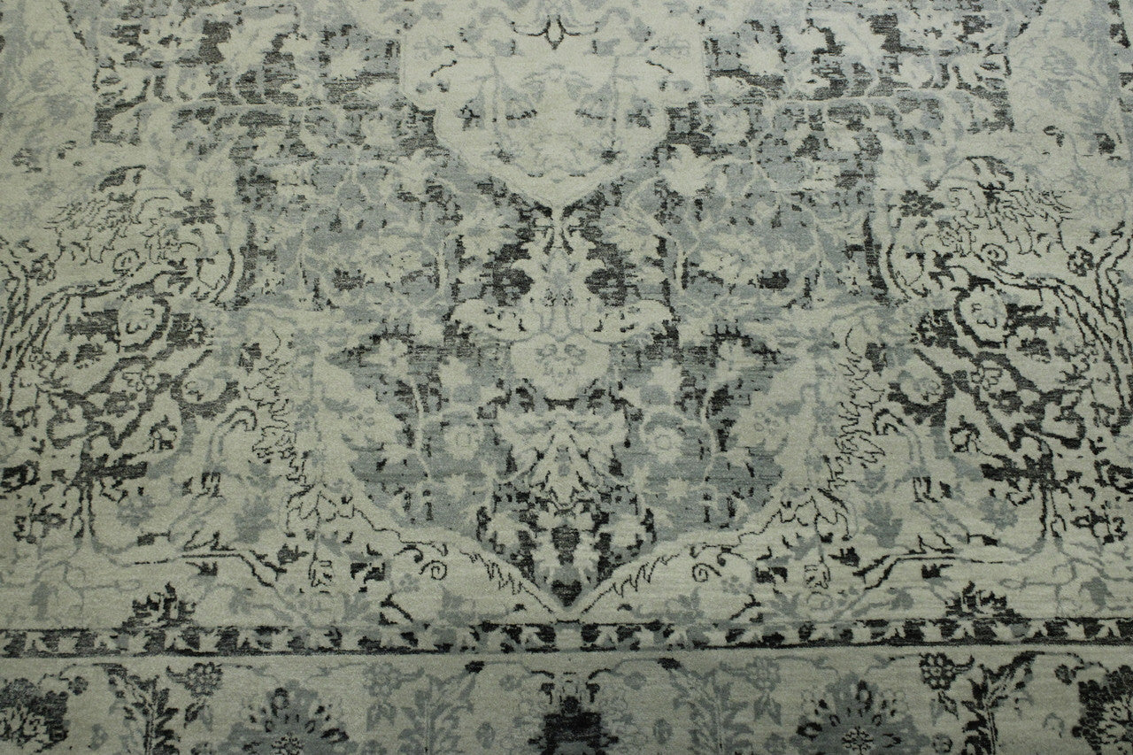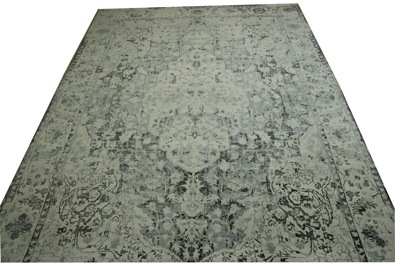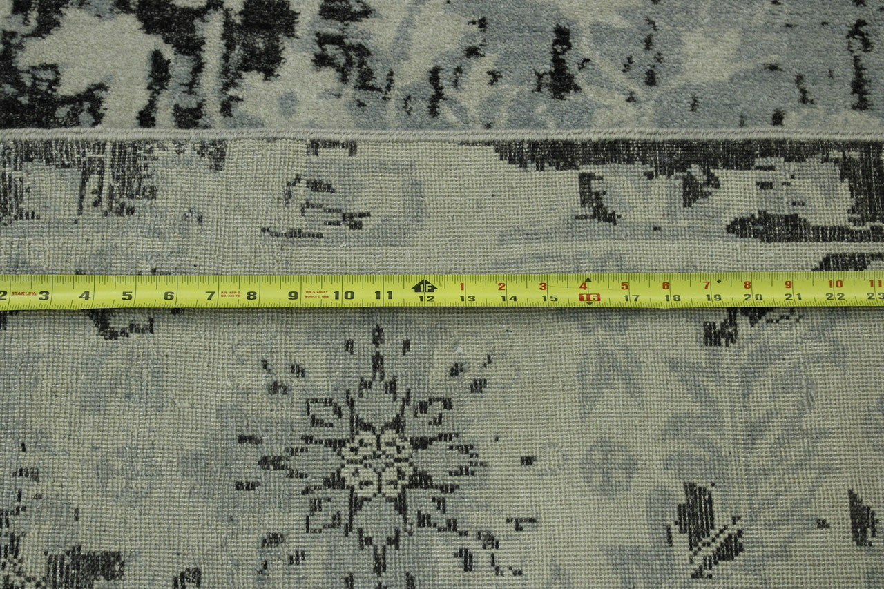Exact Size: 9.1x14.5Construction: Hand KnottedShape: RectangleMaterial: WoolColor Combination: Grey/BlueStyle: TransitionalOrigin: India