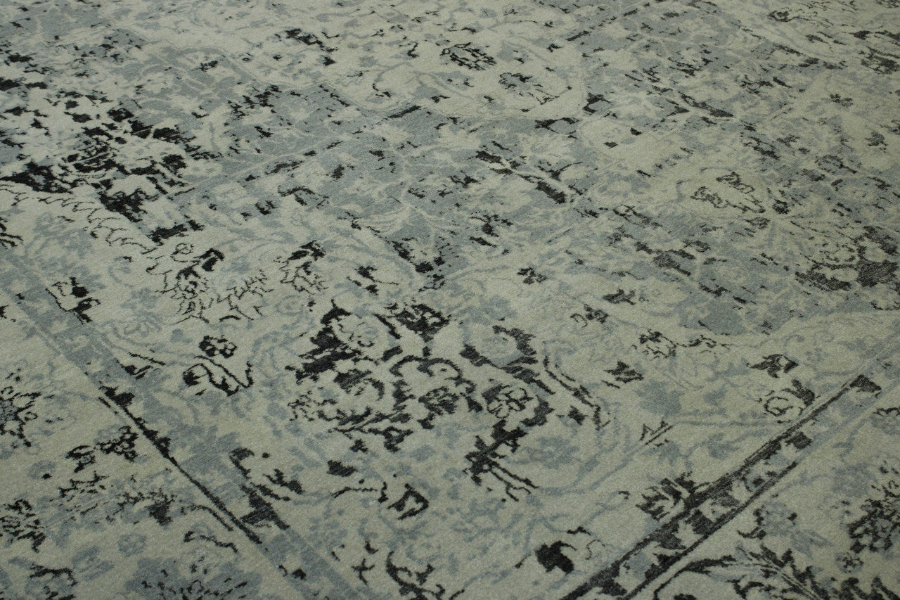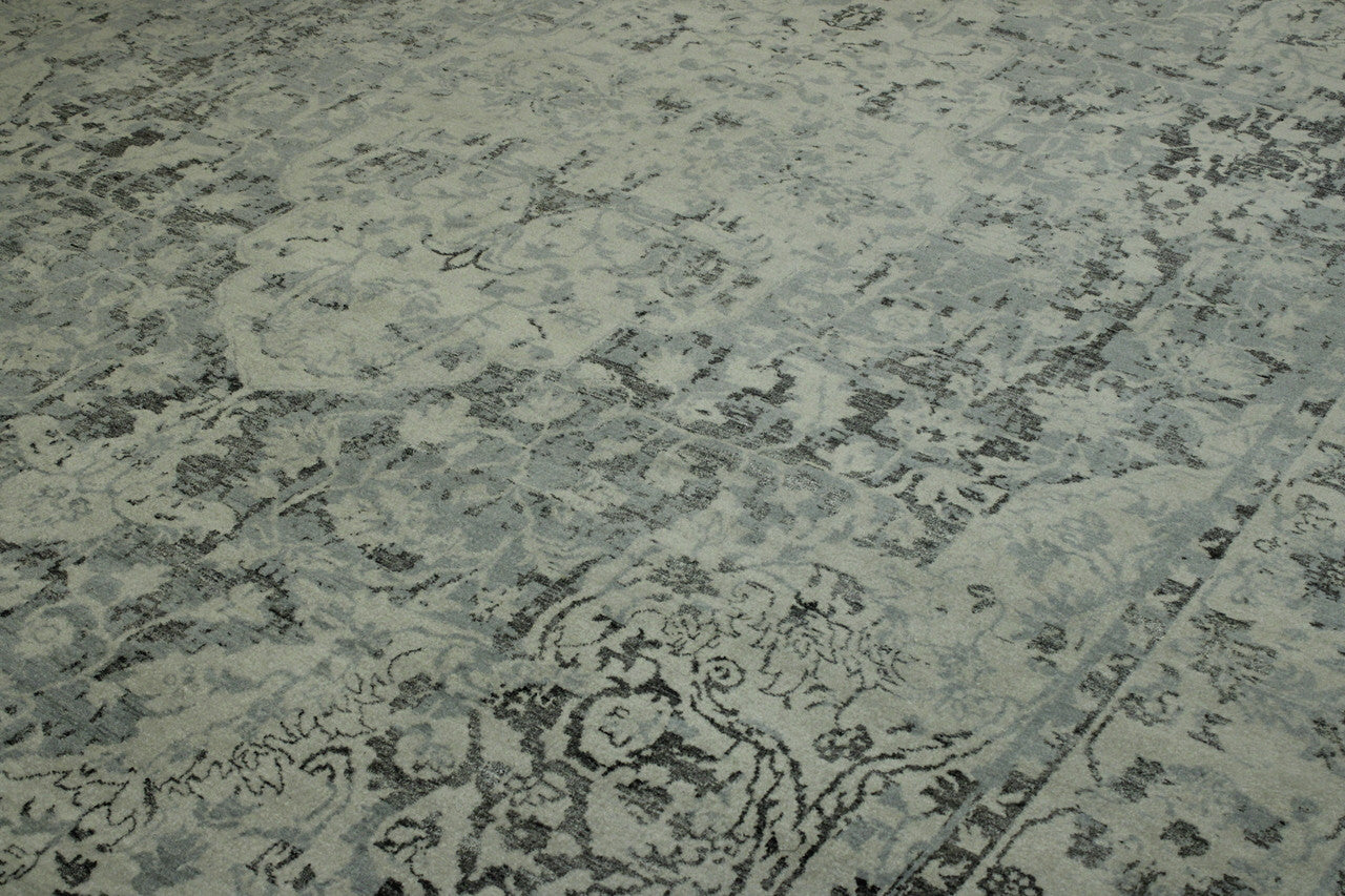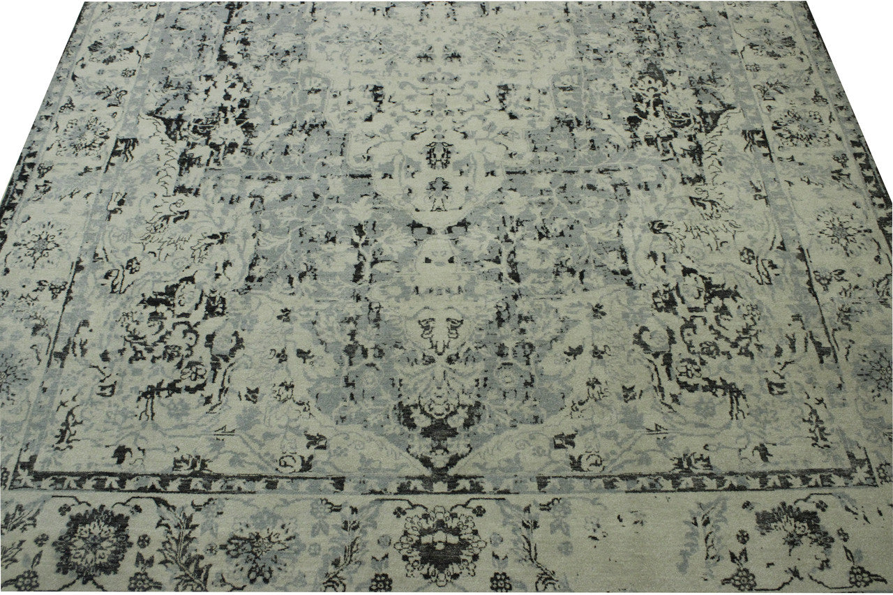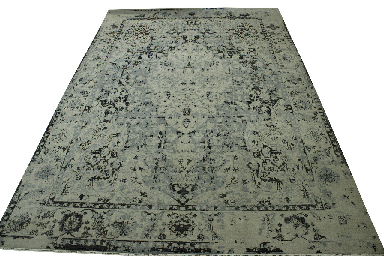 Exact Size: 9.1x14.5Construction: Hand KnottedShape: RectangleMaterial: WoolColor Combination: Grey/BlueStyle: TransitionalOrigin: India