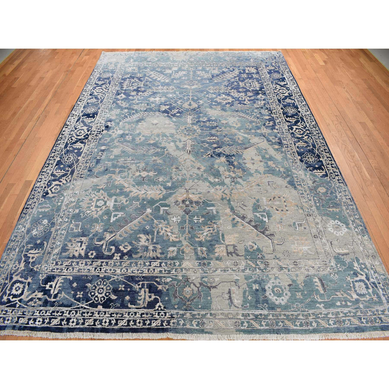 Transitional Wool & Silk Hand Knotted Rug Blue Blue 9.10X13.10 -O078040