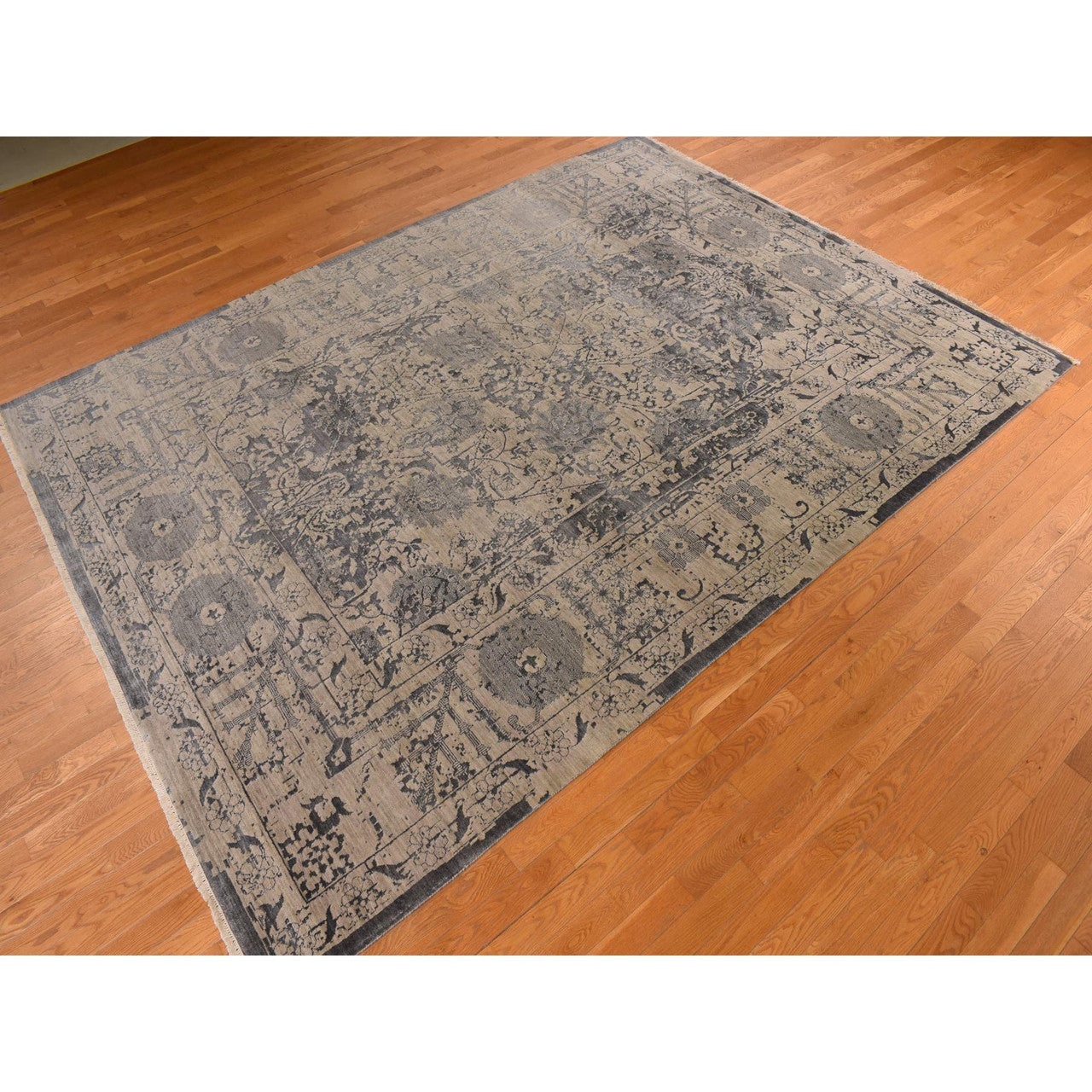 Transitional Wool & Silk Hand Knotted Rug Brown Brown 9.1X12.0 -O078288