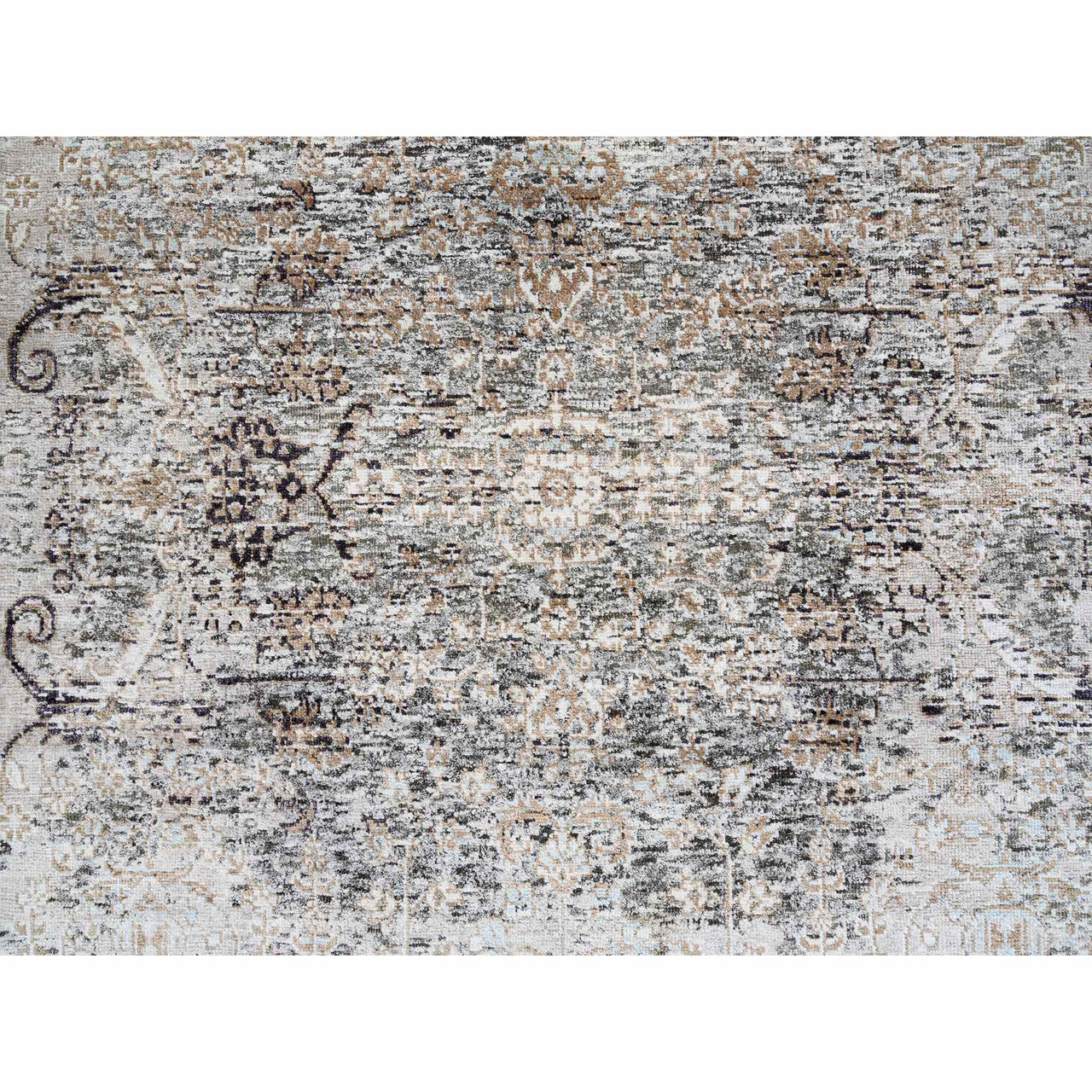 Transitional Wool & Silk Hand Knotted Rug Grey No Border 4.1X6.0 -O064679