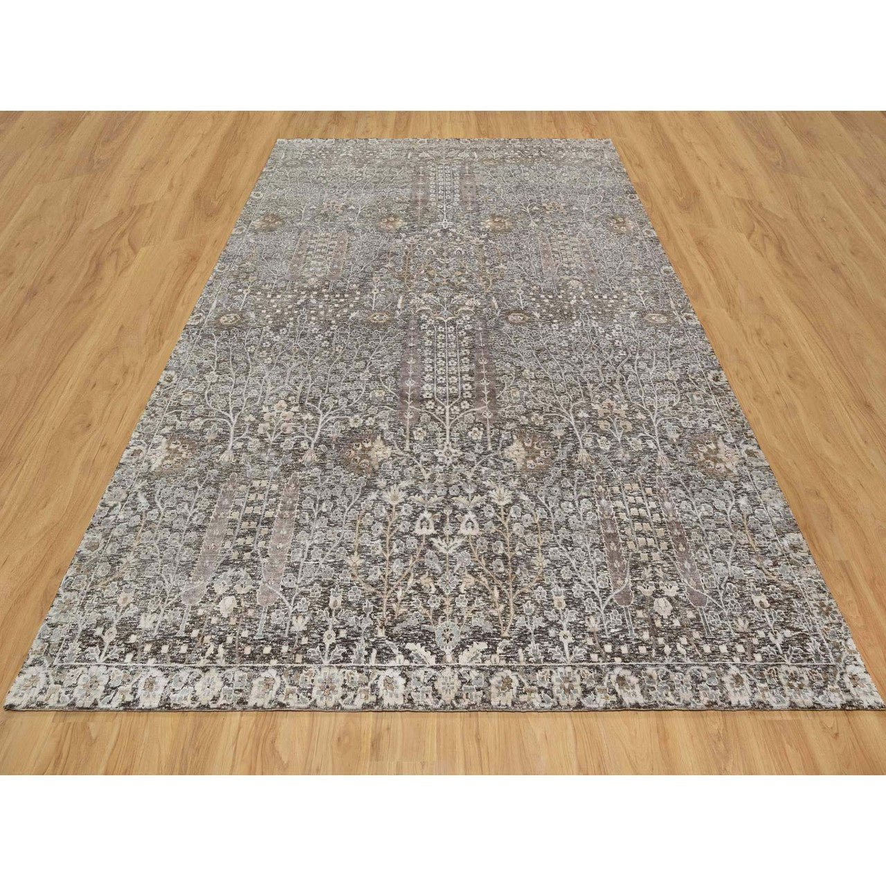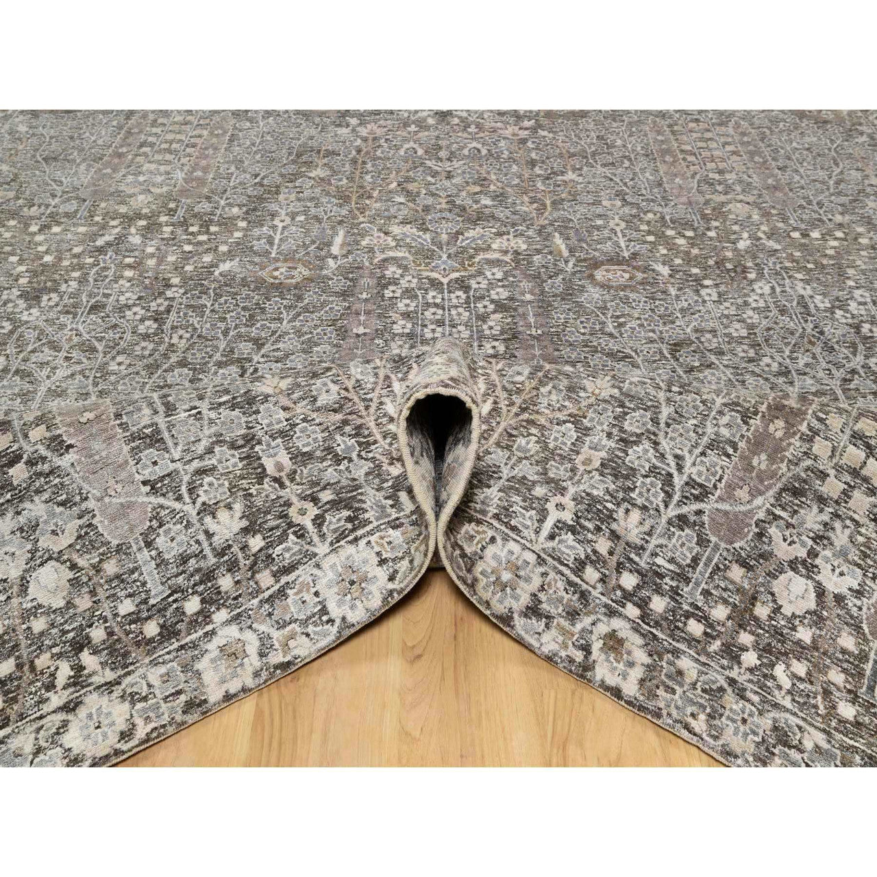 Transitional Wool & Silk Hand Knotted Rug Grey No Border 9.0X11.11 -O090940