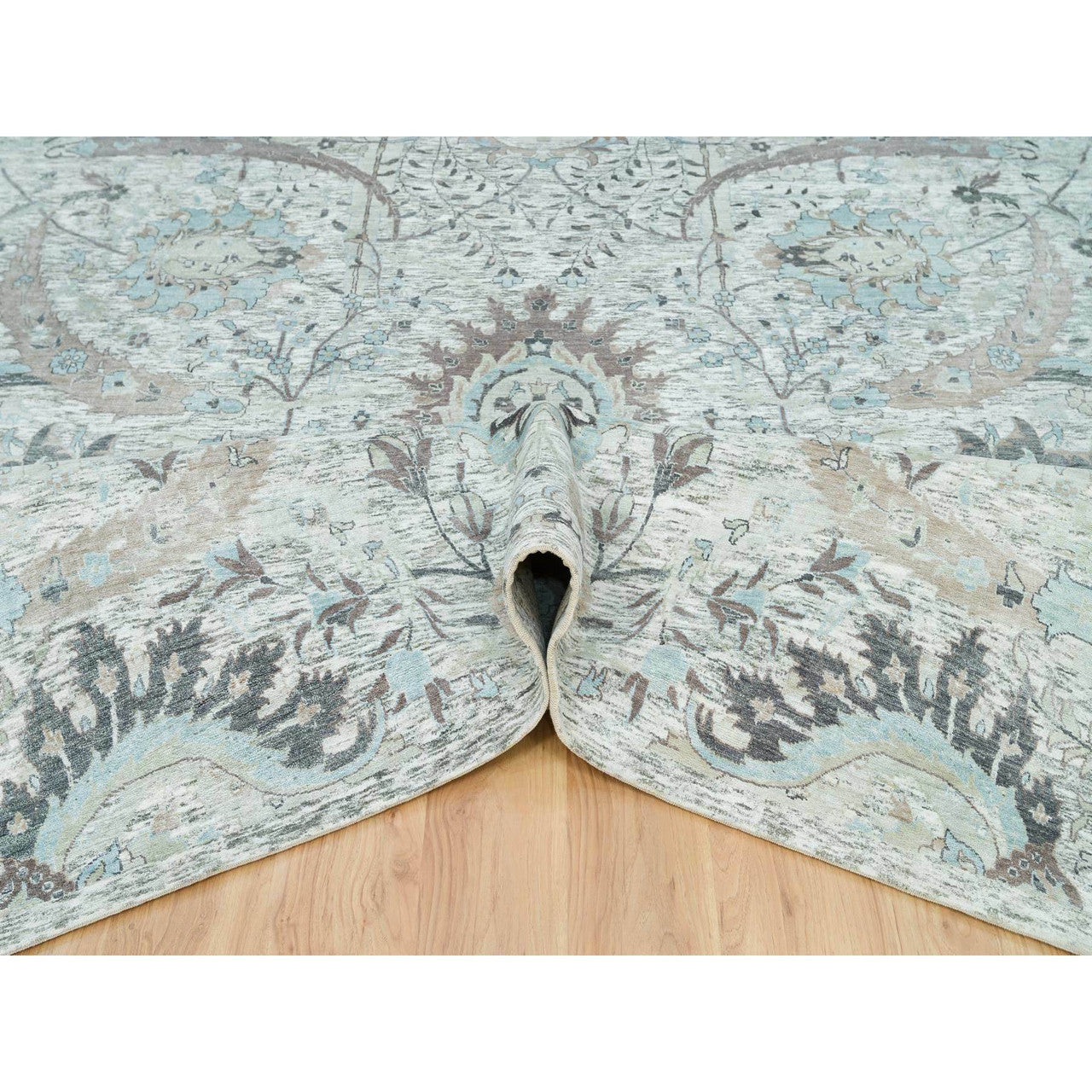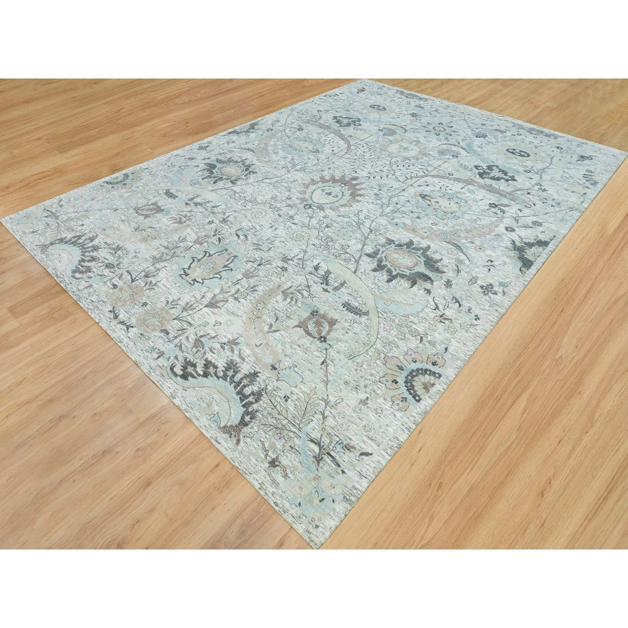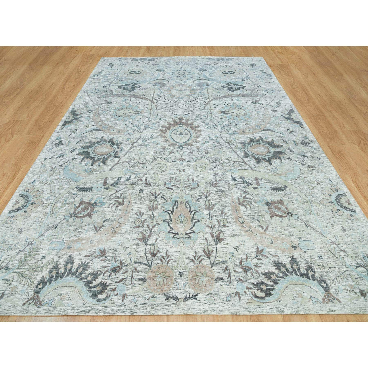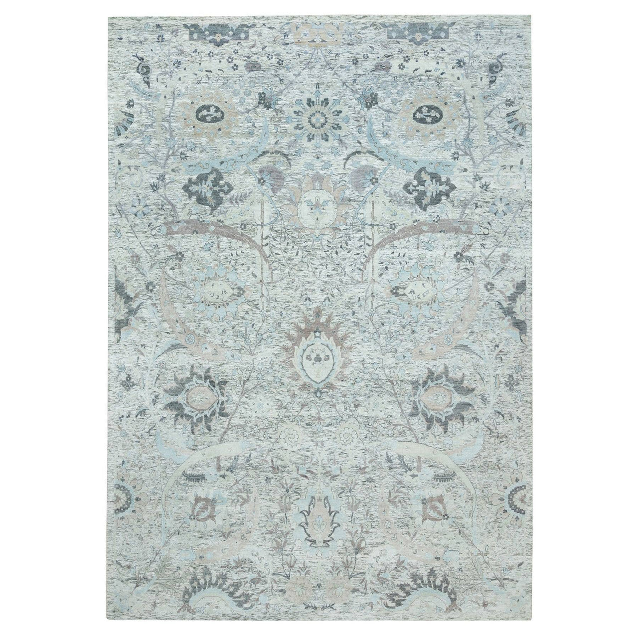 Transitional Wool & Silk Hand Knotted Rug Ivory No Border 10.0X14.1 -O065898